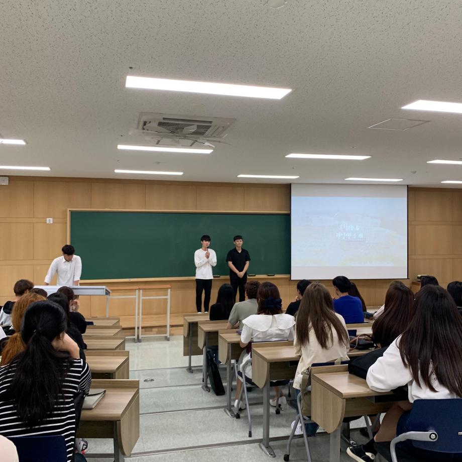 김진경학과장님의 말씀과 더불어 총학생회 듀오의 공약이행상황, 이번 학기 새롭게 만난 복학생분들의 소개시간이 있었습니다.