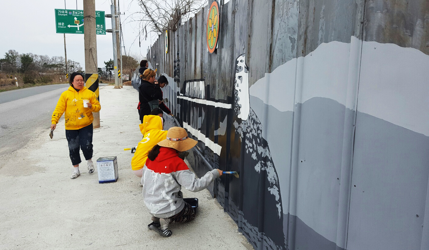 거리벽화 작업에 열중하고 있는 건양대 학생들 2.jpg
