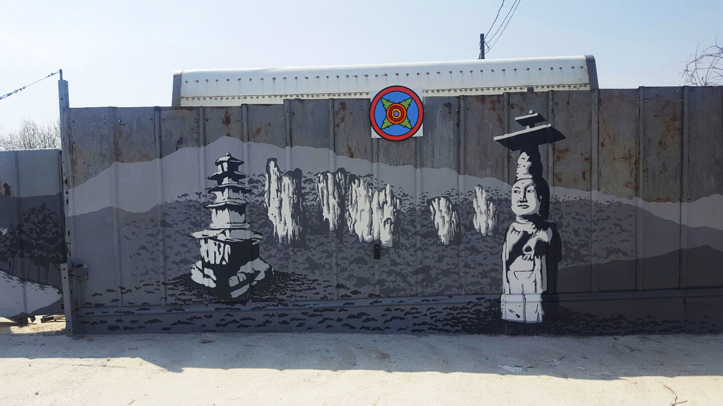 폐차장 철벽에 그려진 논산 관촉사 풍경.jpg