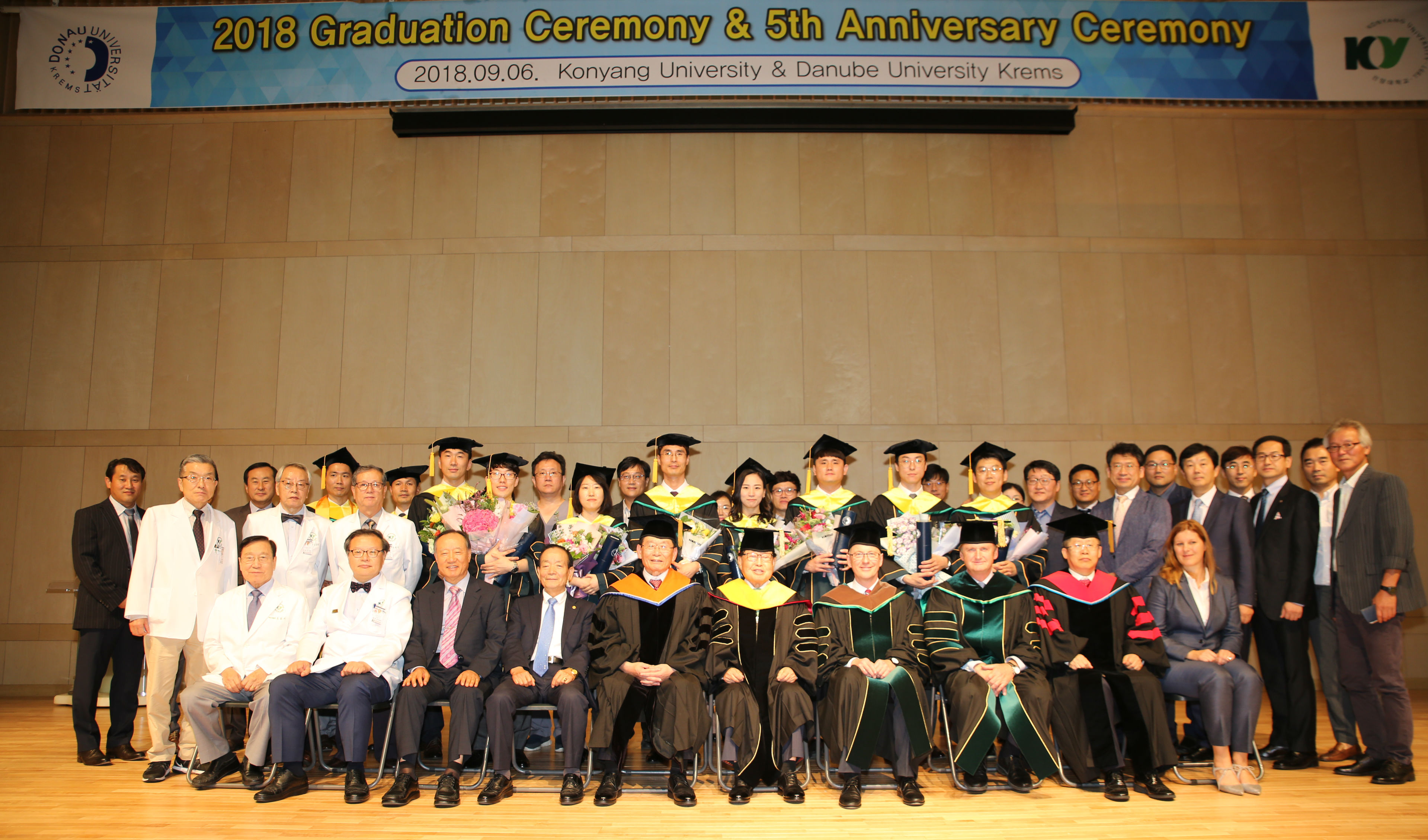 건양대학교(총장 이원묵)는 6일 오후 대전 메디컬캠퍼스 죽헌정보관 리버럴아츠홀에서 건양대와 오스트리아 국립 다뉴브(Danube)대학교가 함께 운영하는 보건복지대학원 물리치료학과 복수학위과정 5주년 기념식 및 학위수여식을 개최했다고 밝혔다.