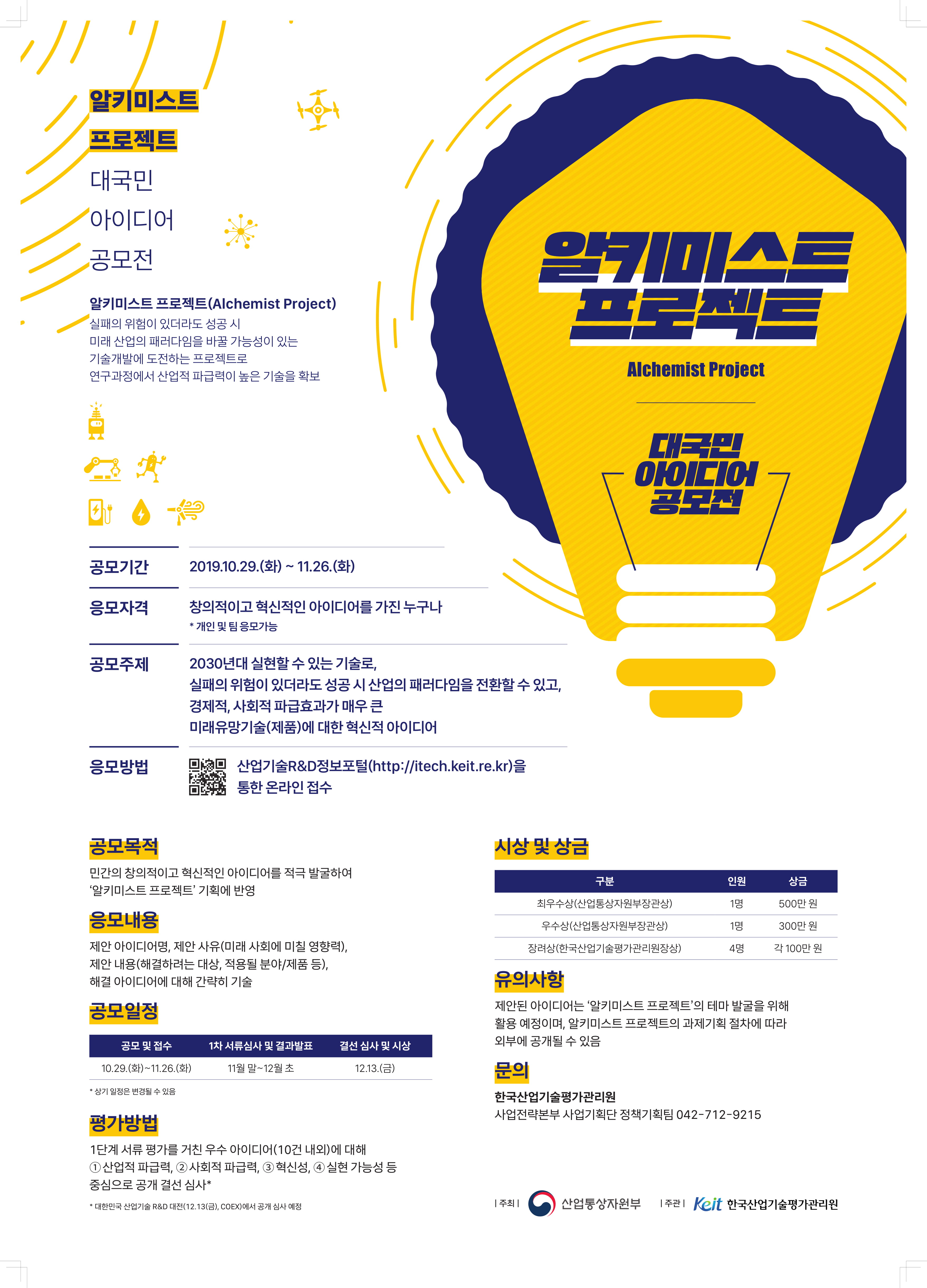 | 제목 | 알키미스트 프로젝트 대국민 아이디어 공모전 안내 | ||||