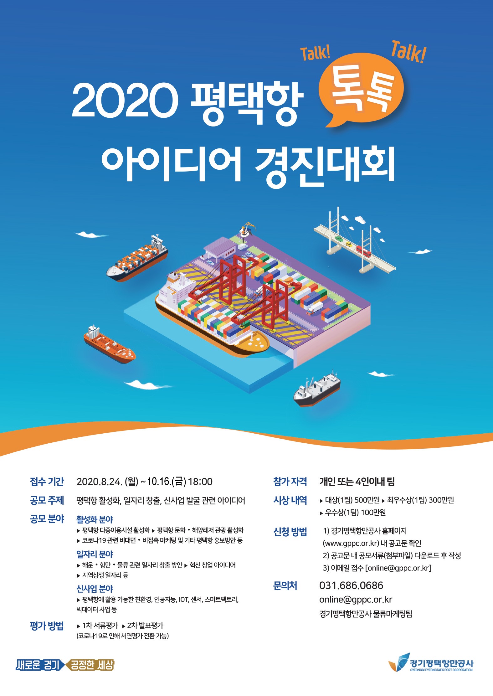 | 제목 | 2020 평택항 톡톡(TalkTalk) 아이디어 경진대회 안내 | ||||