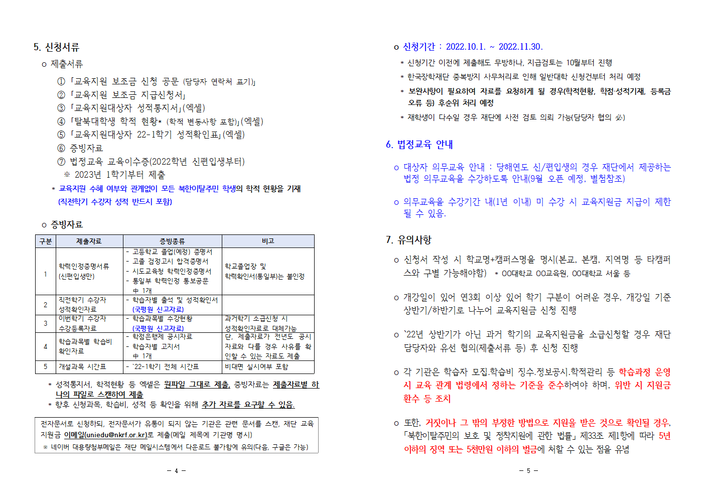 붙임1-2022년 하반기 북한이탈주민 교육지원 안내(학점은행제).hwp