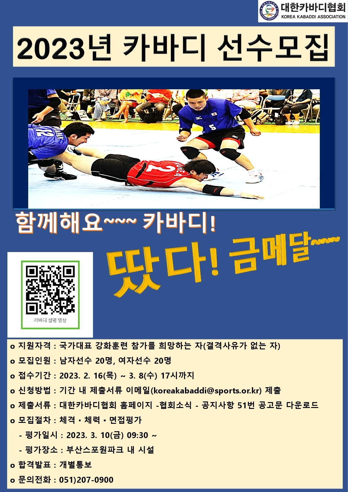 | 제목 | 2023년 카바디 선수모집 안내 | ||||