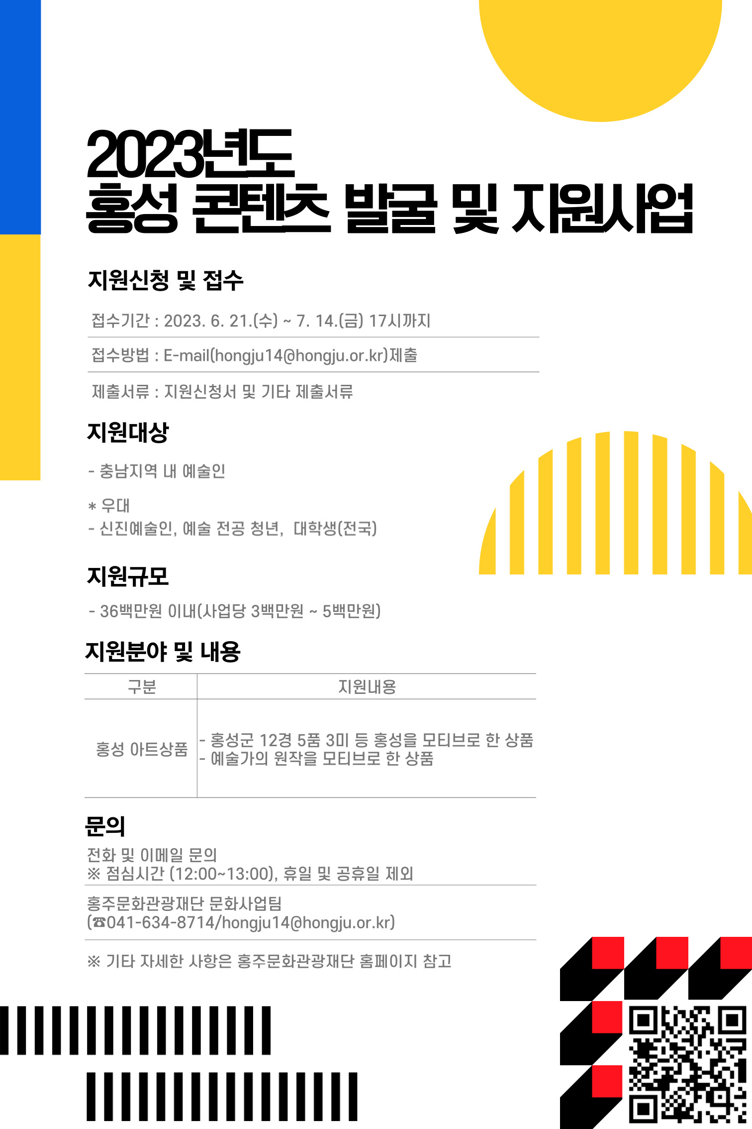 | 제목 | 2023년도 홍성콘텐츠 발굴 및 지원사업 안내 | ||||