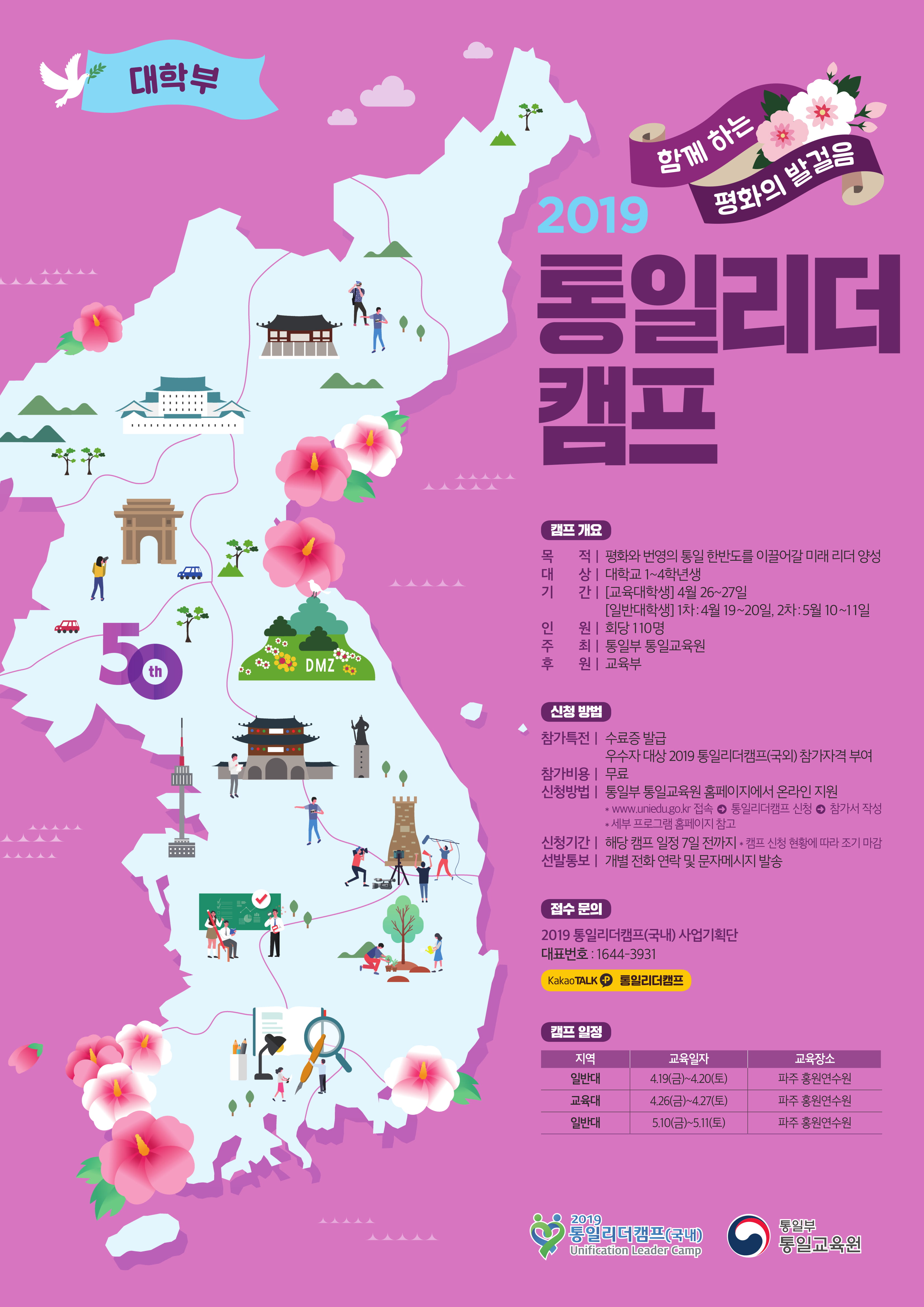 | 제목 | 통일부 주최 2019 통일리더캠프(국내) 안내 | ||||