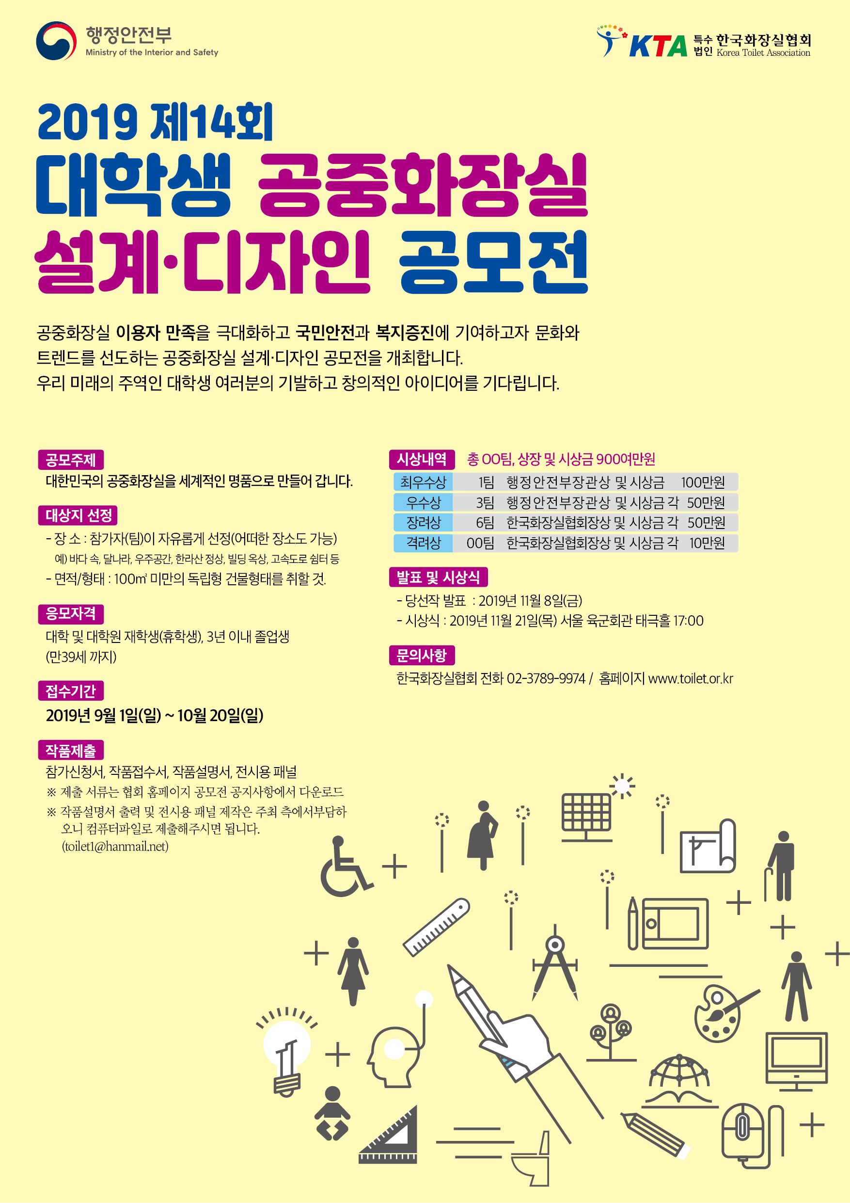 | 제목 | 제14회 공중화장실 설계.디자인 공모전 안내 | ||||