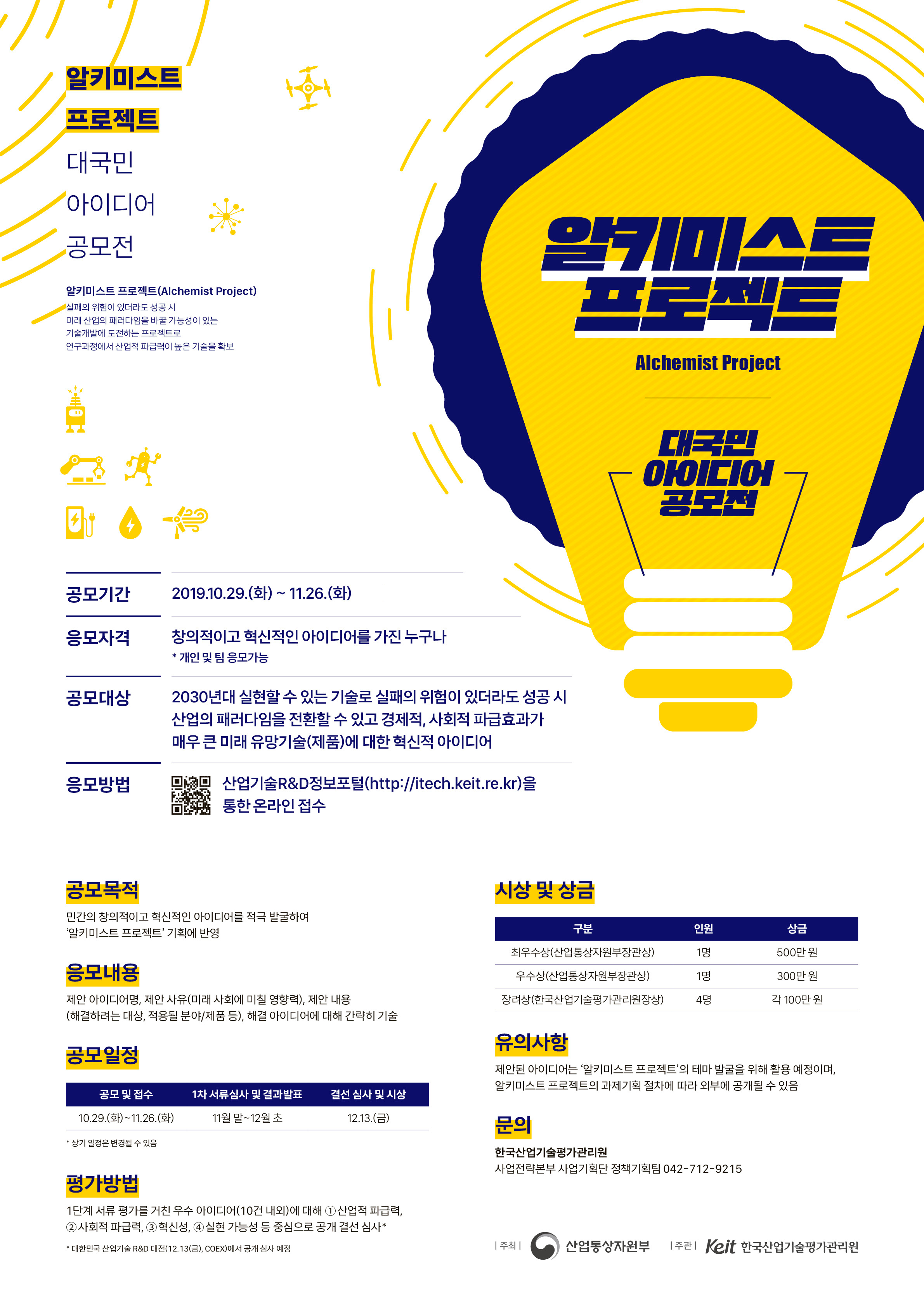 | 제목 | 알키미스트 프로젝트 대국민 아이디어 공모전 | ||||