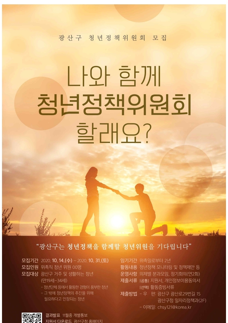 | 제목 | 광주 광산구 광산구 청년정책위원회 위원 모집 안내 | ||||
