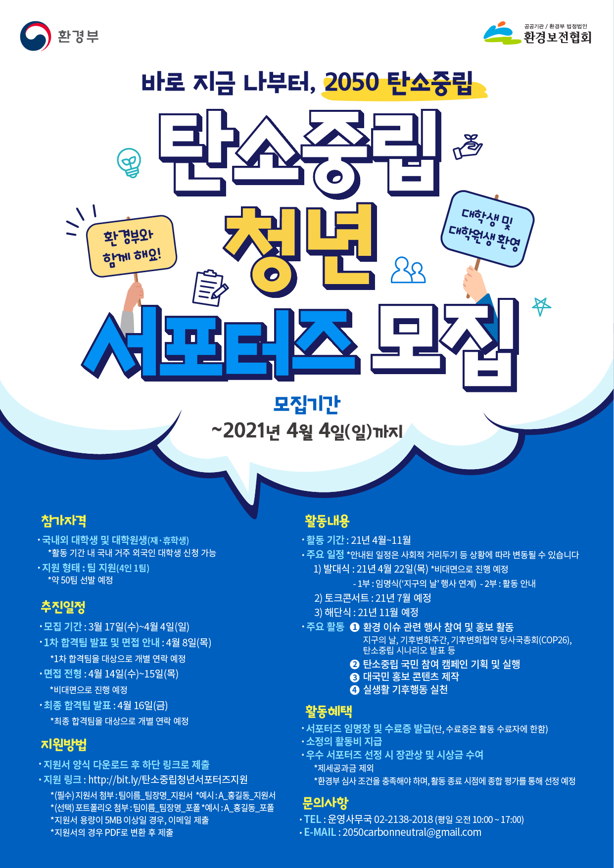 | 제목 | 탄소중립 청년 서포터즈 모집 안내 | ||||