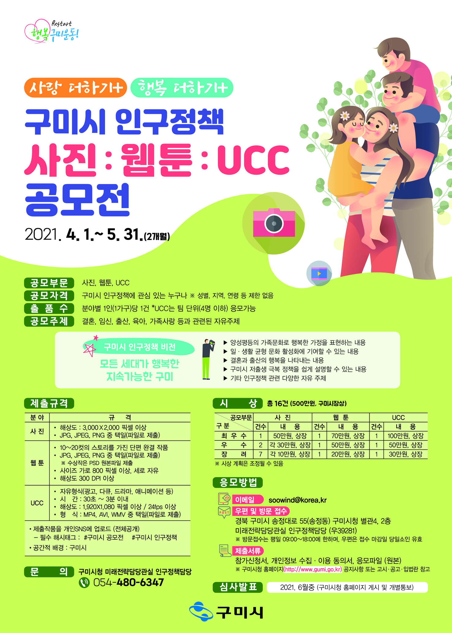 | 제목 | 구미시 인구정책 사진·웹툰·UCC 공모전 안내 | ||||