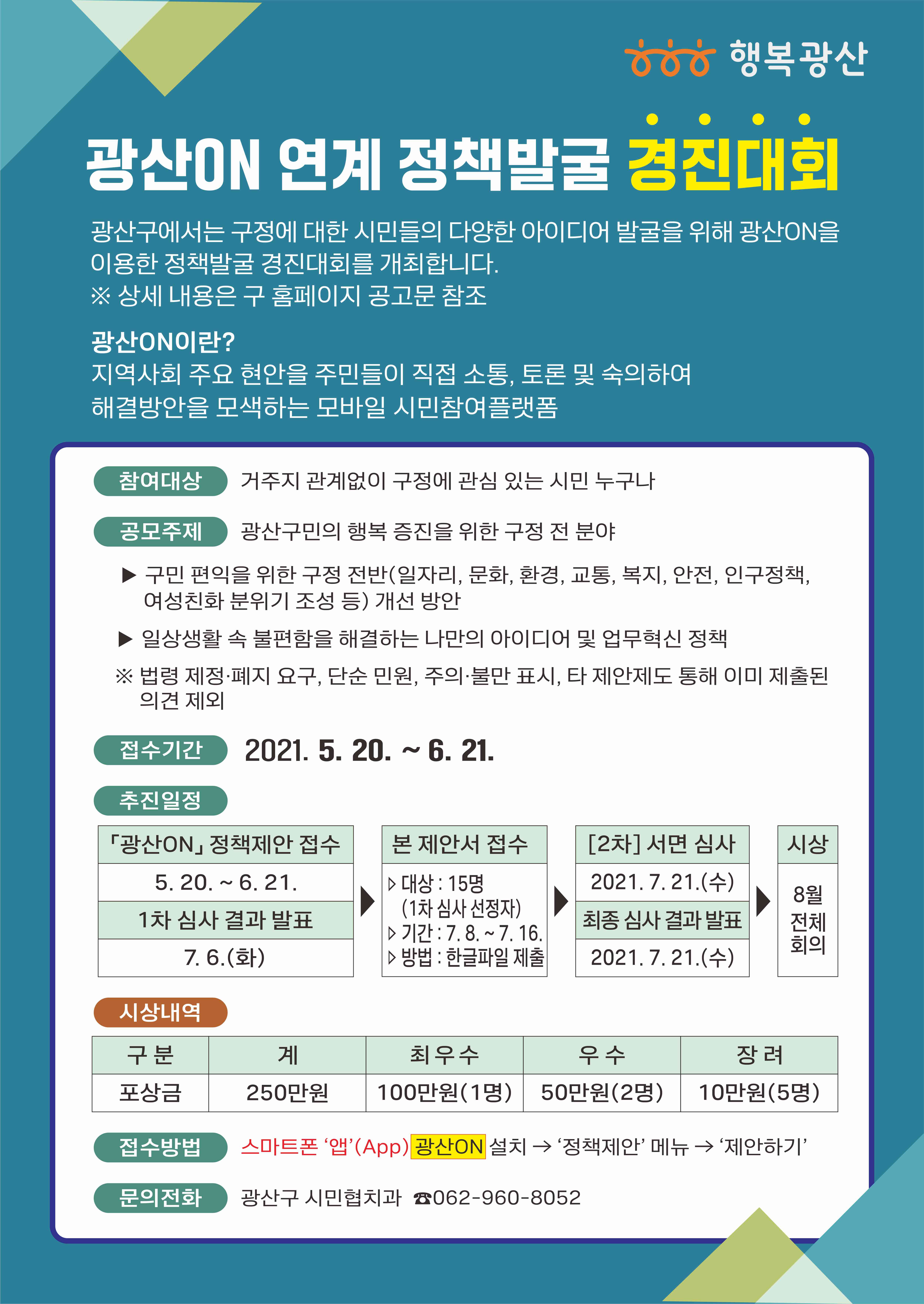 | 제목 | 광산ON 연계 정책발굴 경진대회 안내 | ||||