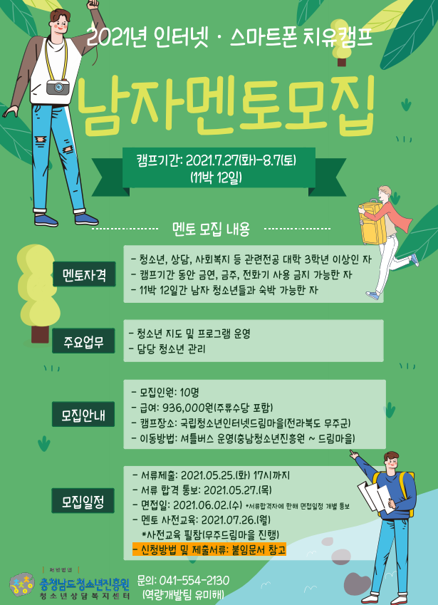| 제목 | 2021년 인터넷·스마트폰 치유캠프 멘토 선발 안내 | ||||