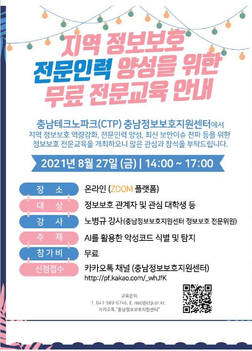 | 제목 | 2021년 정보보호 인력양성 교육 안내 | ||||