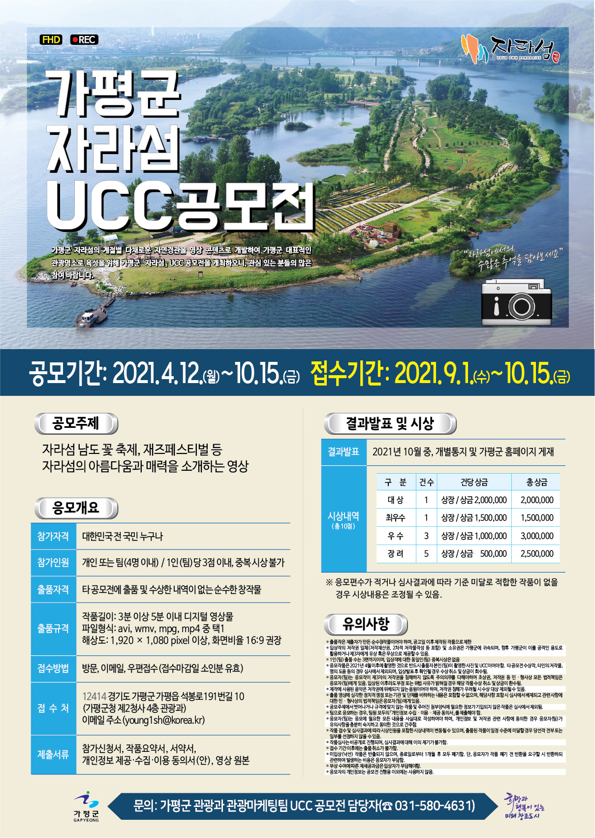 | 제목 | 『2021 가평군 자라섬UCC 공모전』 안내 | ||||