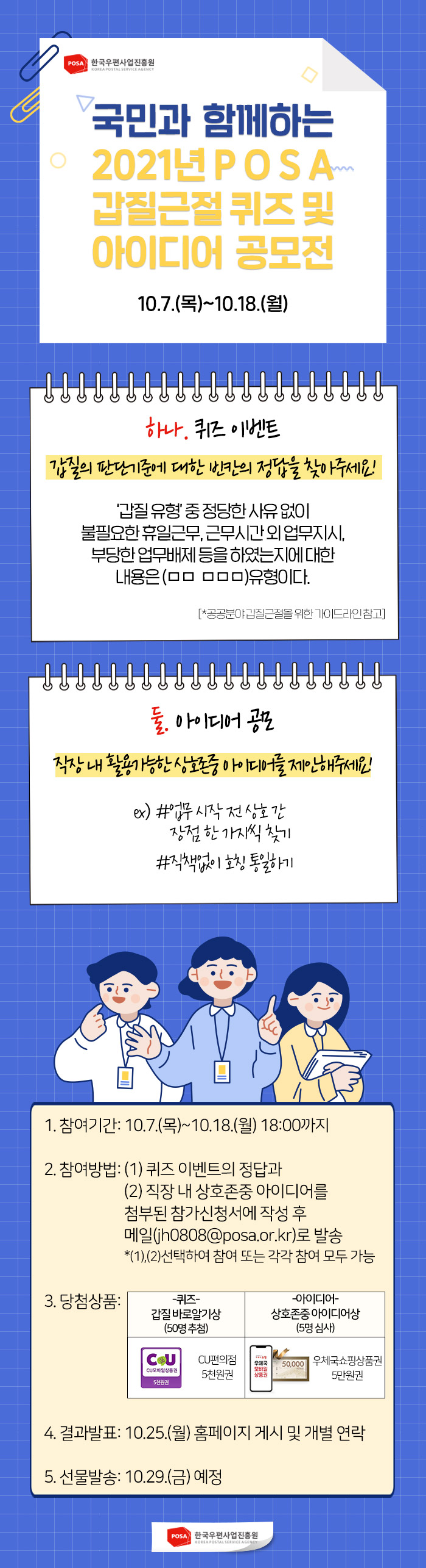 | 제목 | 「2021 POSA 갑질예방ㆍ근절 퀴즈 및 아이디어 공모전」안내 | ||||