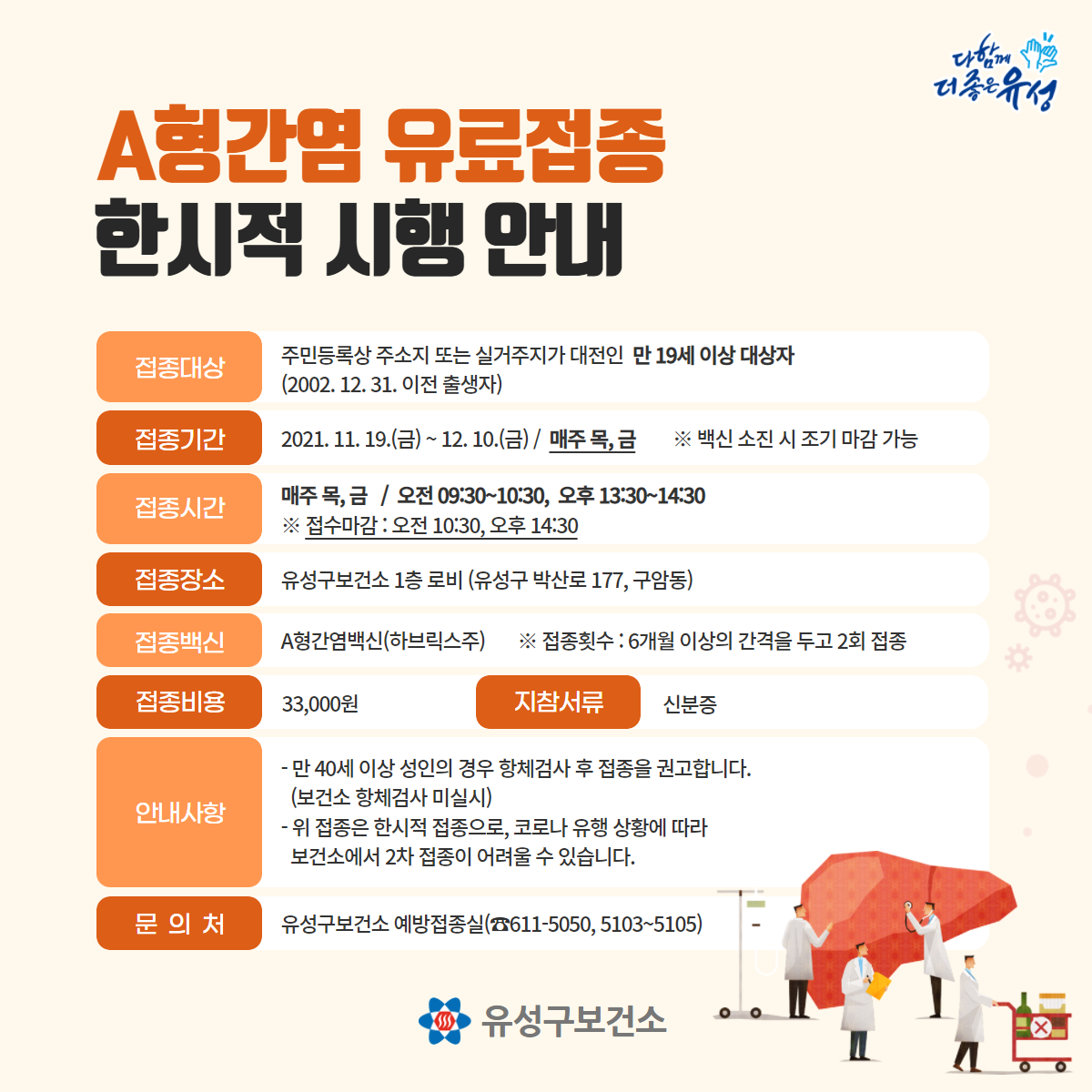 | 제목 | A형간염 유료접종 한시적 시행에 따른 안내 | ||||
