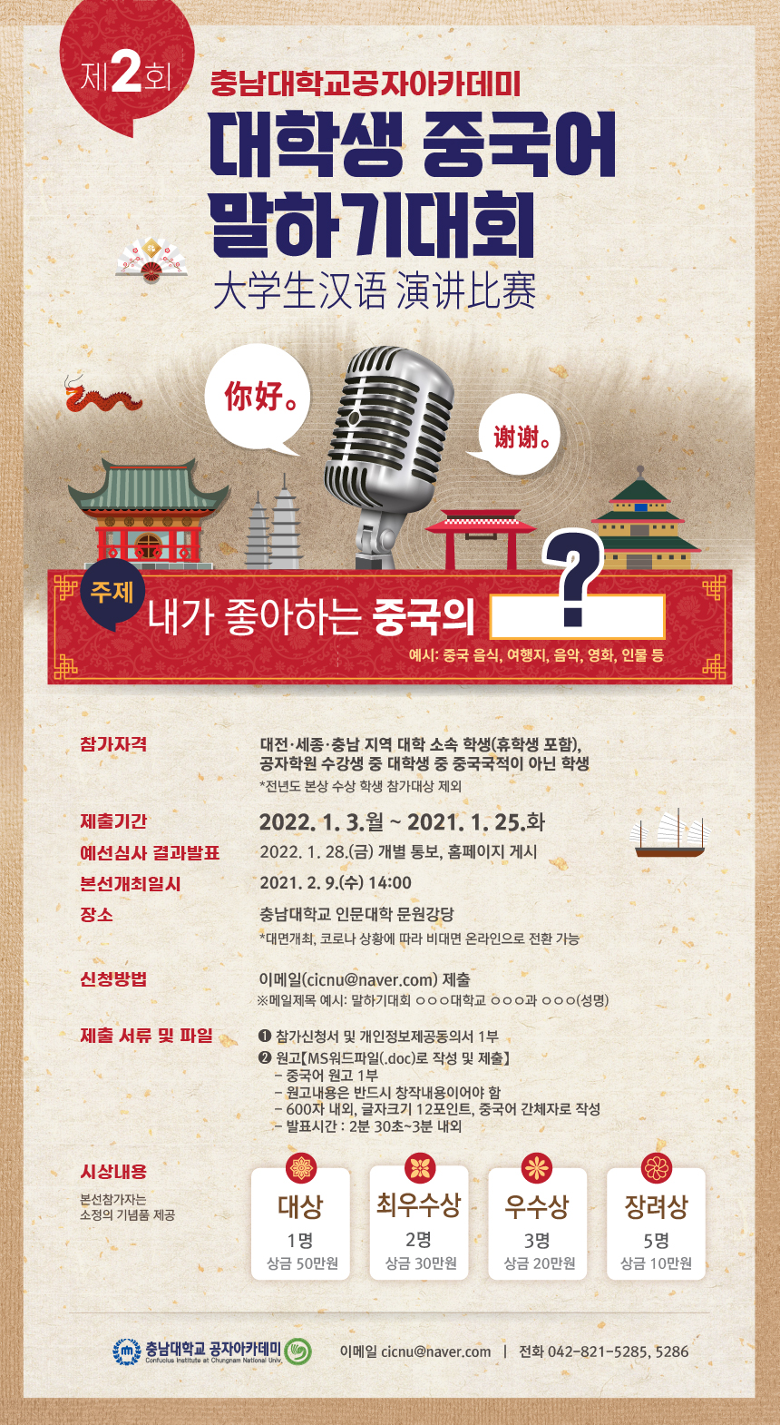 | 제목 | 제2회 대학생 중국어 말하기 대회 개최 안내 | ||||