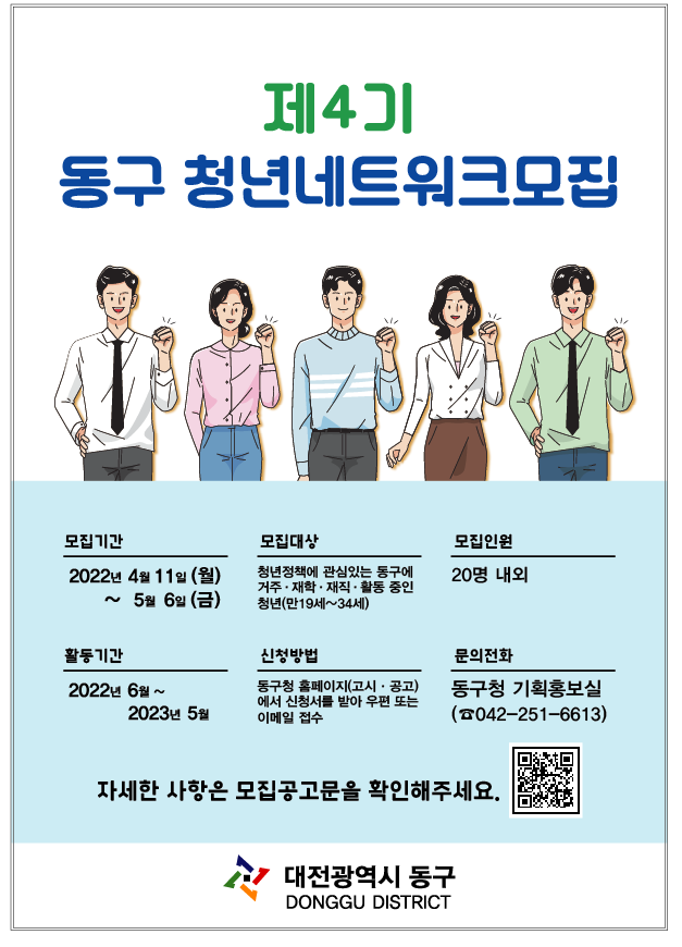 | 제목 | 제4기 대전광역시 동구 청년네트워크 모집 안내 | ||||