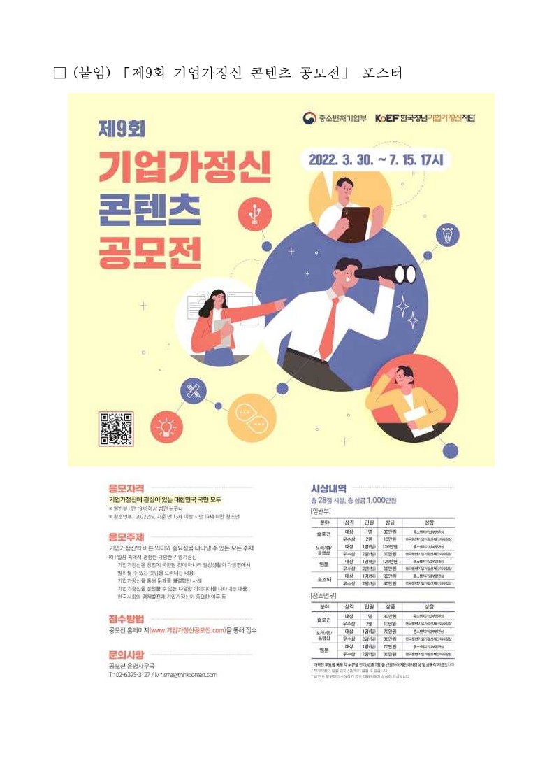 | 제목 | 제9회 기업가정신 콘텐츠 공모전 홍보 협조 요청 | ||||