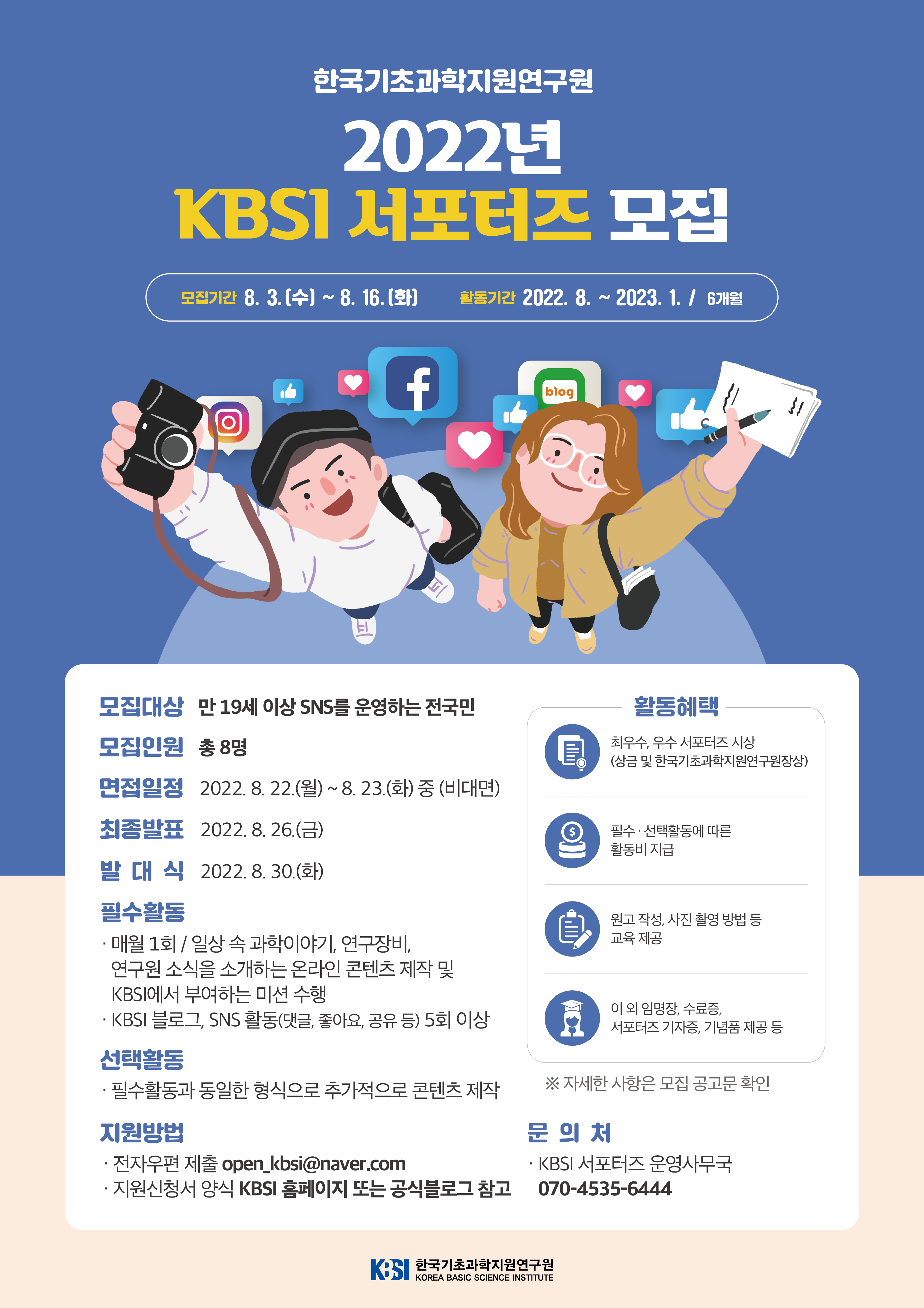 | 제목 | 2022년 KBSI 서포터즈 모집 안내 | ||||