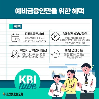 | 제목 | 예비금융인 대상「KBI tube 서비스 무료 체험 및 할인 혜택」제공 안내 | ||||