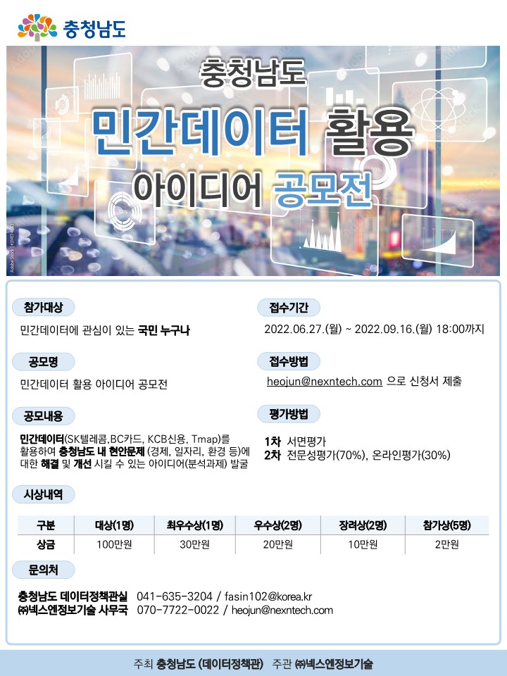 | 제목 | 통신, 카드소비 등 민간데이터 활용 아이디어 공모전 안내 | ||||