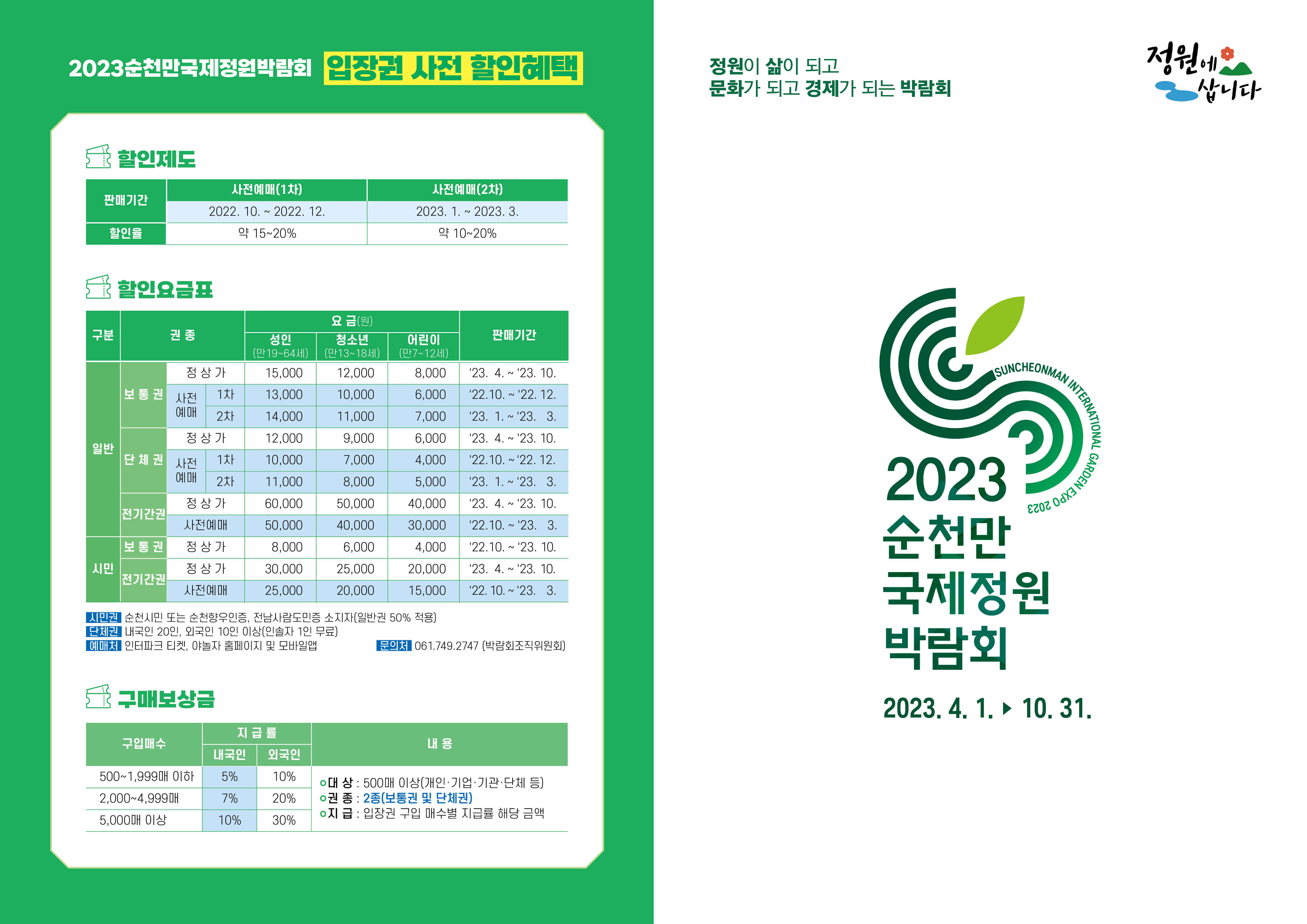 | 제목 | 2023순천만국제정원박람회 홍보 및 입장권 사전예매 안내 | ||||