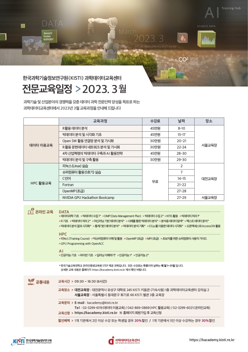 | 제목 | 한국과학기술정보연구원(KISTI)2023년 3월 전문교육 운영안내 | ||||