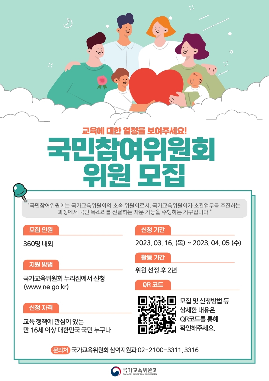 | 제목 | 국가교육위원회 소속 국민참여위원회 위원 공개모집 안내 | ||||
