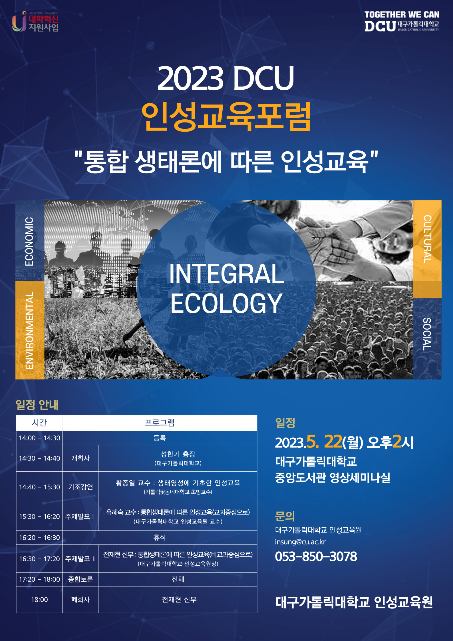 | 제목 | 대구가톨릭대학교 2023 인성교육 포럼 개최 안내 | ||||