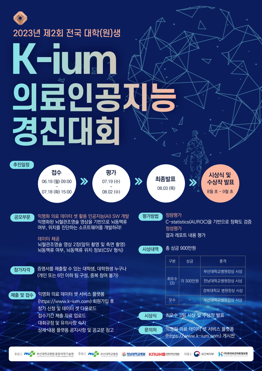 | 제목 | 2023년 제2회『k-ium 의료 인공지능 경진대회』 개최 안내 | ||||