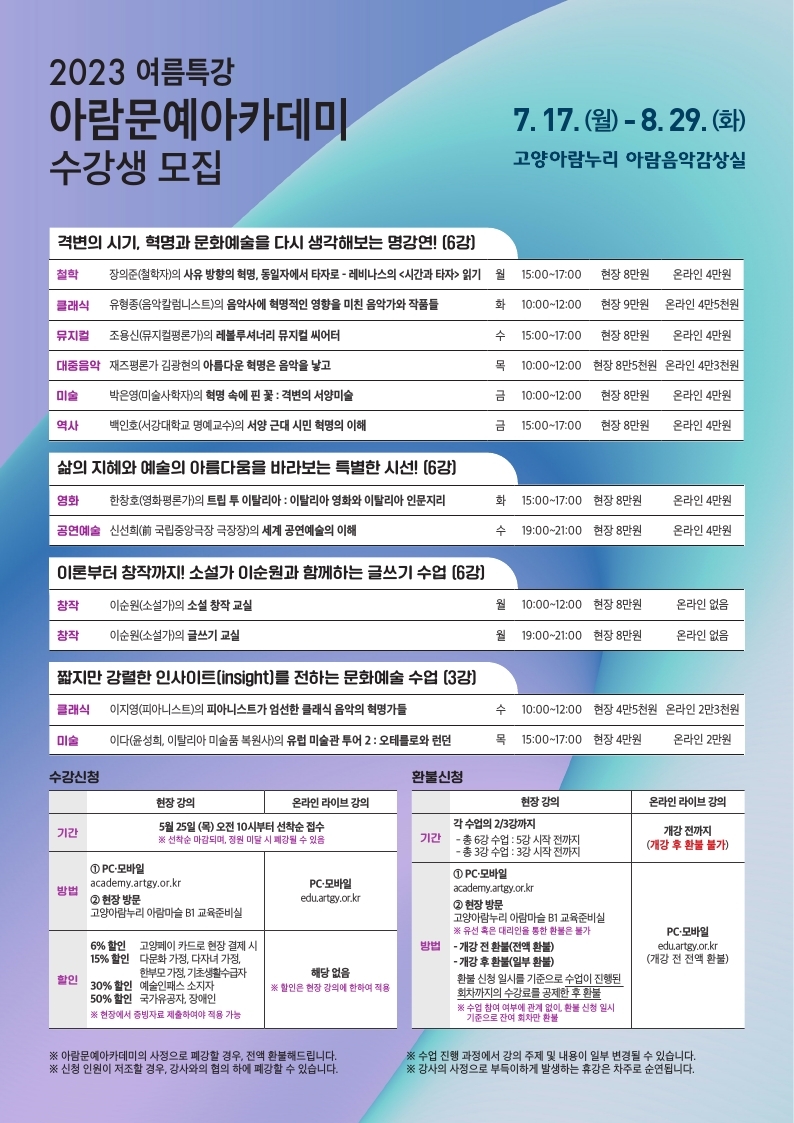 | 제목 | 고양문화재단 [2023 여름특강 아람문예아카데미] 프로그램 안내 | ||||