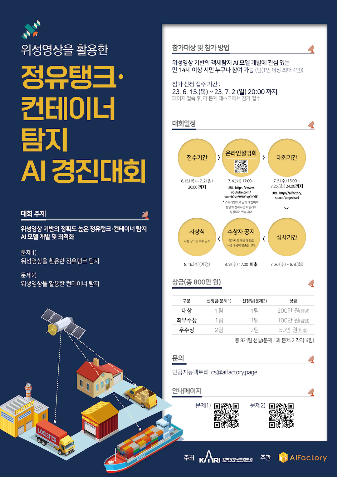 | 제목 | 위성영상을 활용한 정유탱크·컨테이너 탐지 AI 경진대회 안내 | ||||