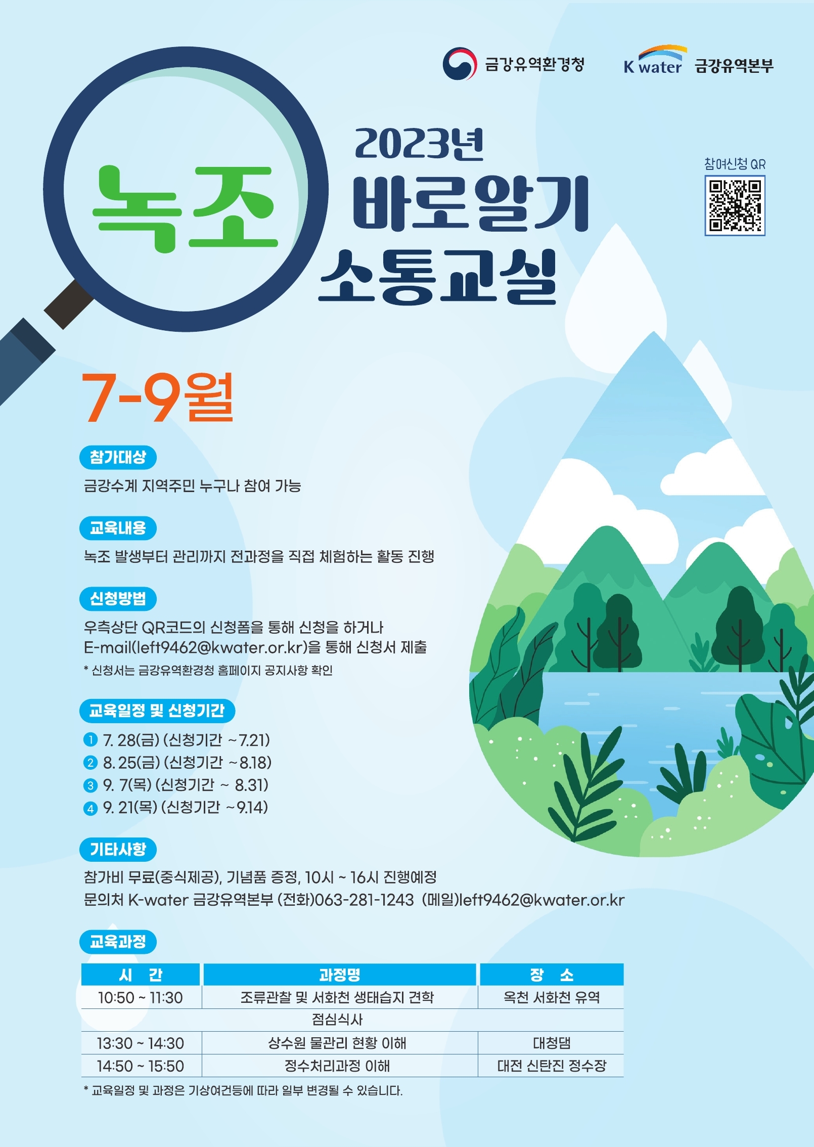 | 제목 | 2023년 녹조 바로알기 소통교실 참여 안내 | ||||
