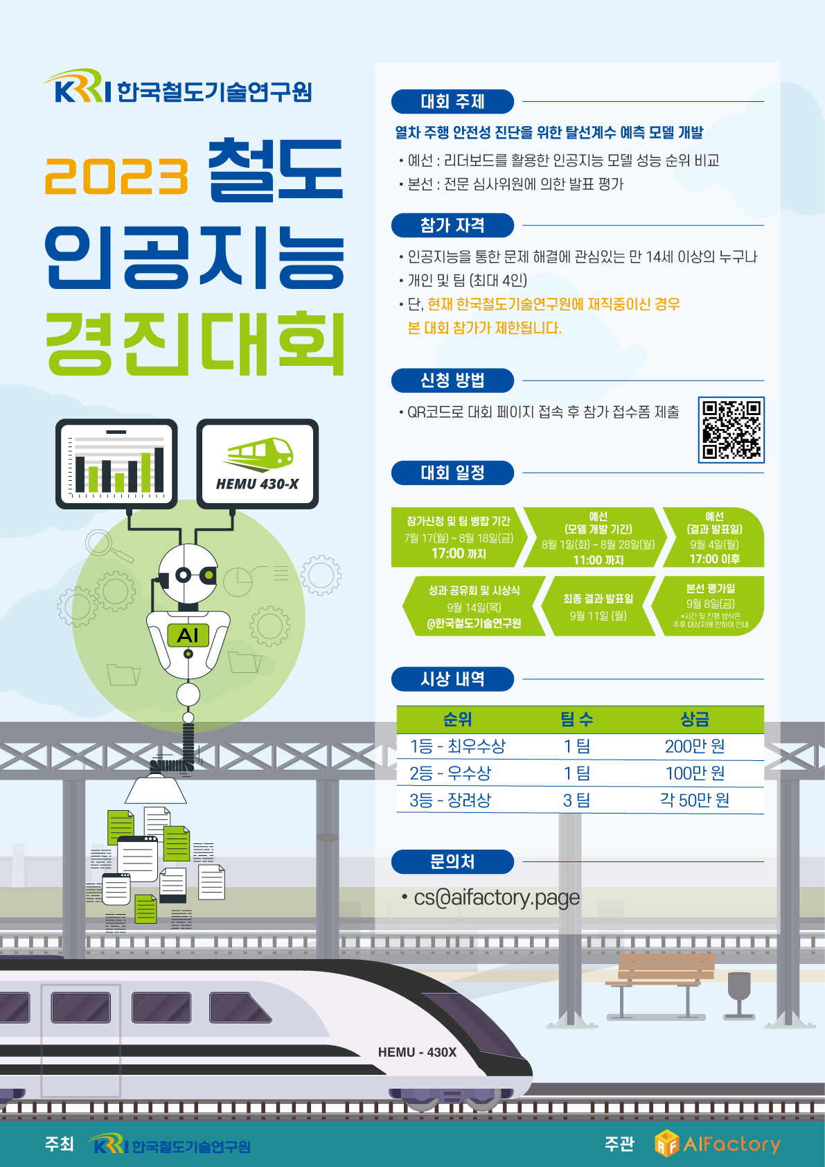 | 제목 | 2023 제1회 철도 인공지능 경진대회 안내 | ||||