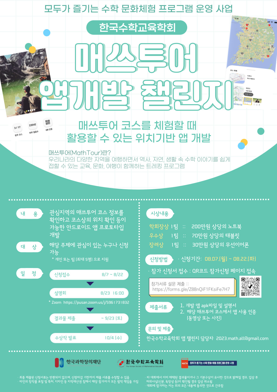 | 제목 | 「모두가 즐기는 수학 문화·체험 프로그램」 공모전 안내 | ||||