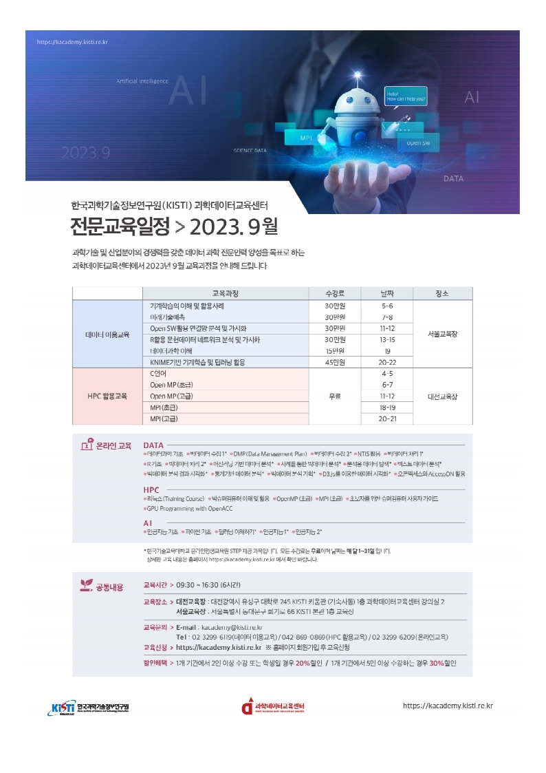 | 제목 | 한국과학기술정보연구원(KISTI) 2023년 9월 전문교육 안내 | ||||