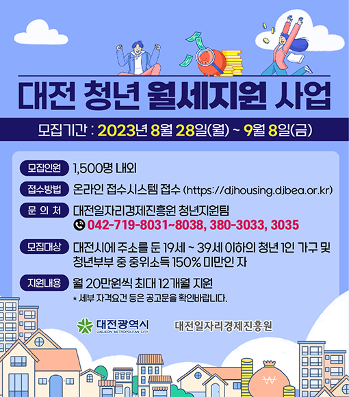 | 제목 | 2023년 대전 청년 월세지원 사업 안내 | ||||