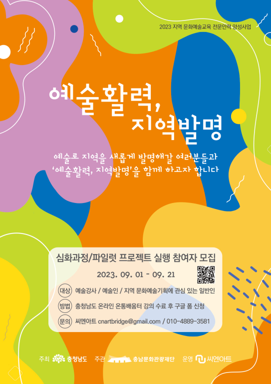 | 제목 | [충남문화관광재단] 2023 지역 문화예술교육 전문인력 양성사업 <예술활력, 지역발명> 프로그램 안내 | ||||